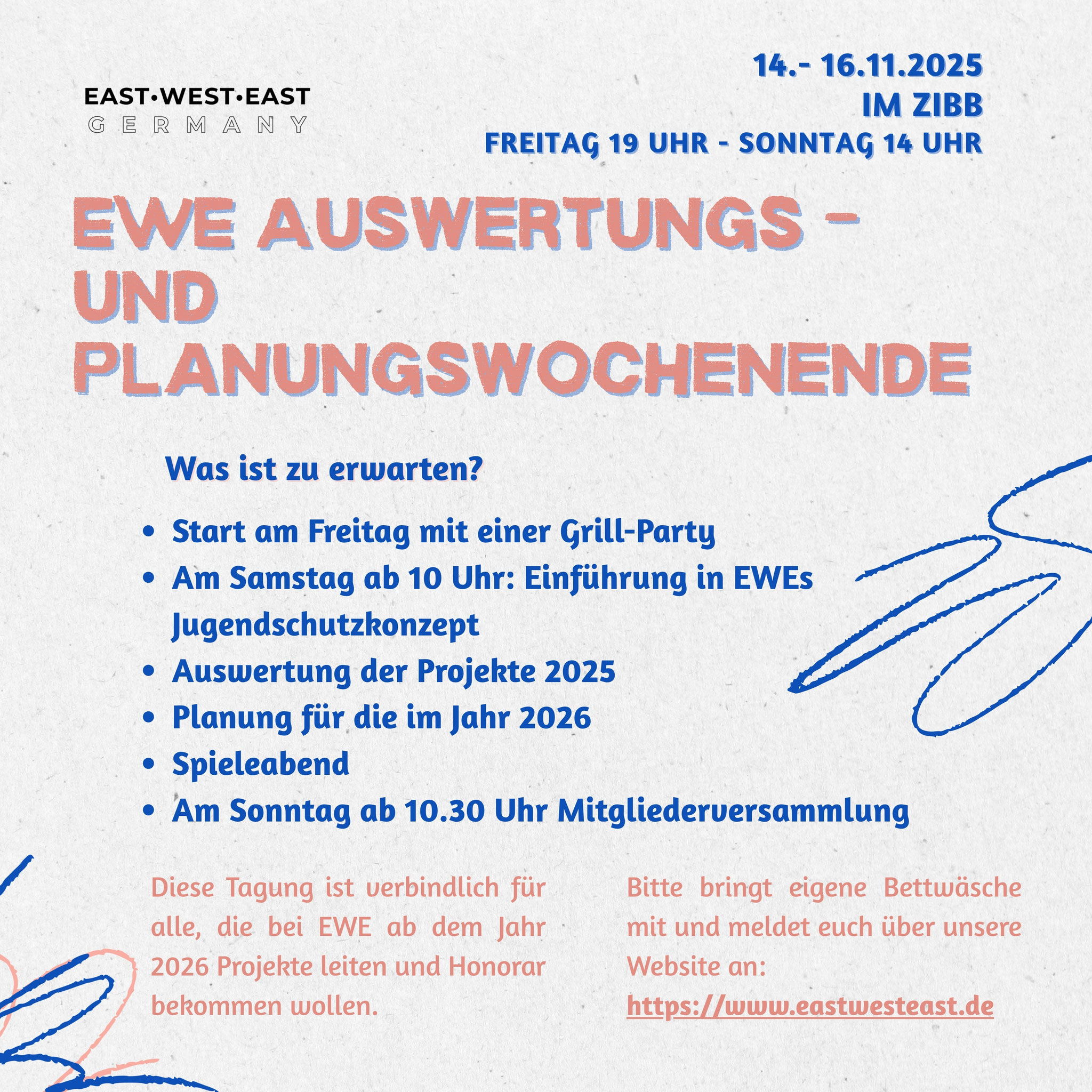 East-West-East Germany e.V. ist eine gemeinnützige Organisation mit Sitz in Hagen und einem weitreichenden Netzwerk in ganz Deutschland und darüber hinaus. Unser Ziel ist es, junge Menschen aus Ost- und Westeuropa zusammenzubringen, sie mit den Prinzipien von Demokratie und Menschenrechten vertraut zu machen und ihnen einen sicheren Raum für non-formale Bildung und Austausch zu bieten. Durch Projekte im Rahmen des EU-Jugendprogramms Erasmus+ ermöglichen wir internationale Begegnungen und fördern interkulturelles Lernen.